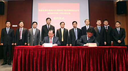 長期以來,國家外專局對中國商飛公司的人才引進(jìn)工作高度重視。2009年,雙方簽訂了《引進(jìn)國外智力服務(wù)框架協(xié)議》。2012年,雙方簽訂了《2012年引智工作行動計劃》,國家外專局還授予中國商飛公司全國首家“國家引進(jìn)國外智力示范單位”稱號。