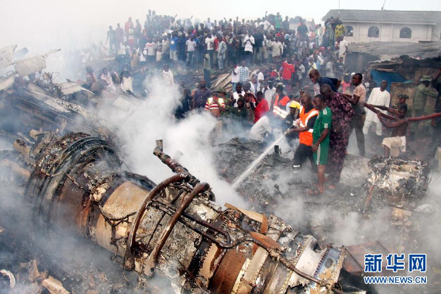 當日,尼日利亞一架客機在拉各斯機場附近墜毀,機上153人全部遇難,空難還造成地面至少40人死亡。新華社發(通吉·奧巴薩攝)