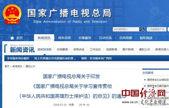 廣電總局:鼓勵和支持創作以英雄烈士事跡為題材的節目