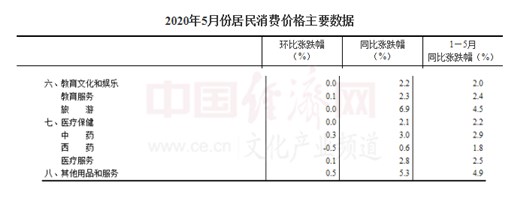 5月份教育文化和娛樂類居民消費價格同比上漲2.2%