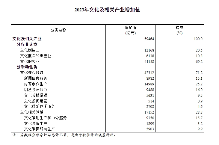 國(guó)家統(tǒng)計(jì)局公布2023年全國(guó)文化、旅游及相關(guān)產(chǎn)業(yè)增加值