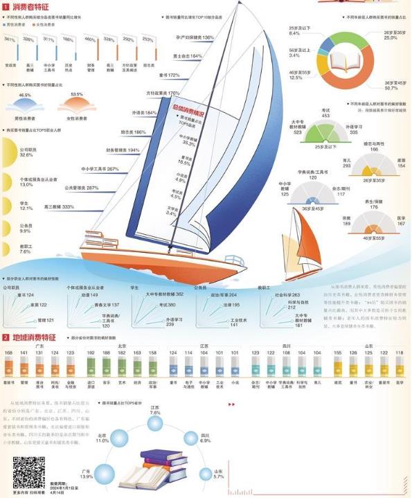 圖書是人們求知的階梯,也是不少人遇到現實問題時,尋找解決途徑的重要選擇。無論是學生、職場人、管理者,還是年輕父母、中老年人,不同的閱讀偏好也體現出生活重心和關注點的區別。從圖書消費人群來看,“80后”人群購買圖書的銷量占比最高,超過了50%。從圖書銷量及增長的占比情況來看,教輔類圖書最受歡迎,增長勢頭十分強勁。