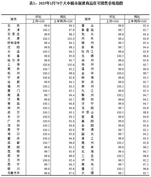 1月份,70個大中城市中,新建商品住宅銷售價格環比上漲城市有24個,比上月增加1個;二手住宅環比上漲城市有7個,比上月減少2個。