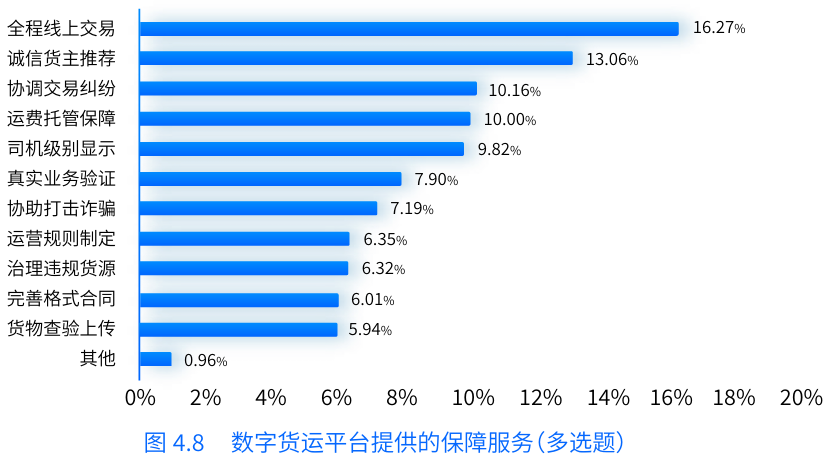 報告指出,通過貨車司機在線上獲取貨源的比例來衡量他們客觀上對平臺的使用情況,發現貨車司機使用數字貨運平臺的程度較高。