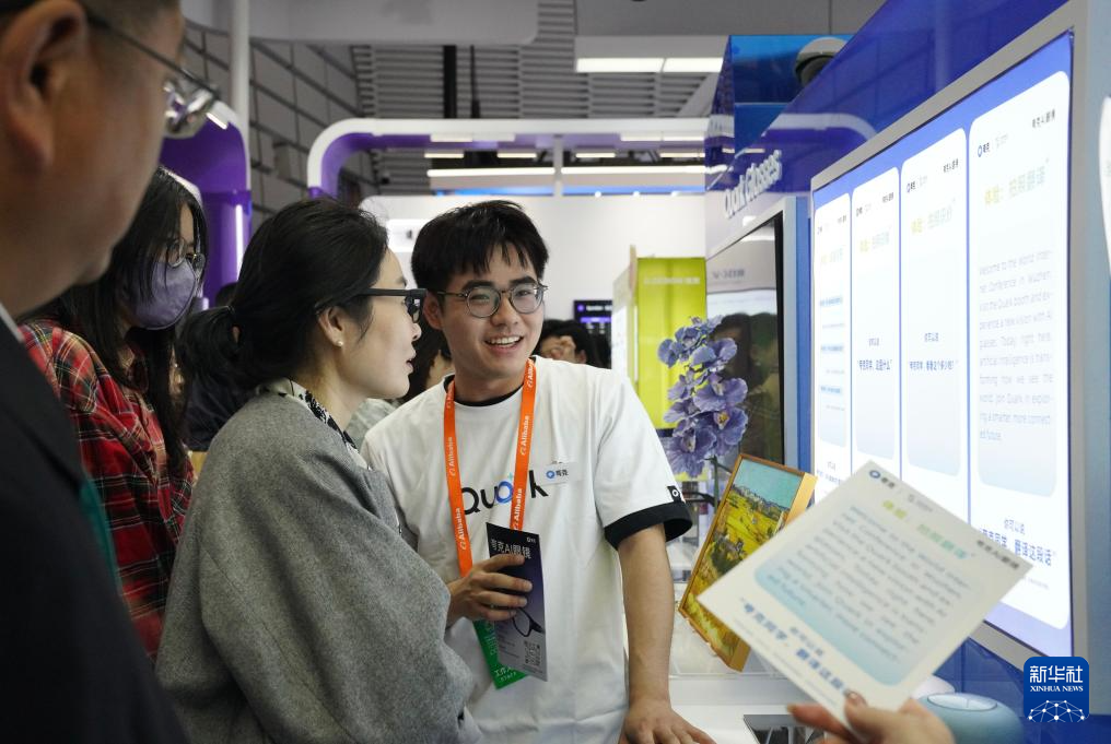 11月6日,觀眾在2025年世界互聯網大會“互聯網之光”博覽會現場的AI眼鏡展臺試戴AI眼鏡。新華社記者 劉瓊 攝