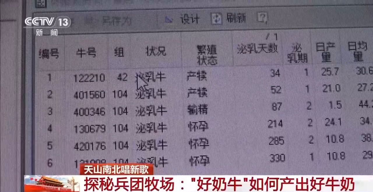 總臺央視記者 陳允濤:在新疆生產(chǎn)建設(shè)兵團(tuán)第十二師天潤乳業(yè)北亭萬頭牧場,這塊大屏幕就是奶牛場的智能管理系統(tǒng),每一頭奶牛的健康狀況都可以實時監(jiān)控。