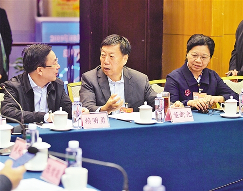 左圖 3月10日,全國政協(xié)民建界別在駐地舉行小組會(huì)議。會(huì)前,全國政協(xié)委員蒙曉靈、董新光、賴明勇(從右至左)就“如何探索生態(tài)優(yōu)先、綠色發(fā)展為導(dǎo)向的新路子”展開交流。 本報(bào)記者 高興貴攝