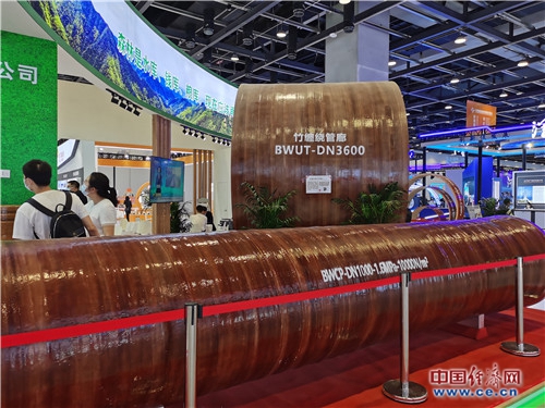 一家企業展示的竹纏繞復合材料管廊。竹纏繞復合材料低碳節能,兼具減碳、固碳、儲碳功能。