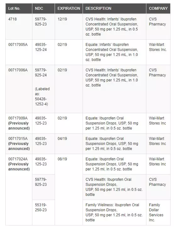 該公司在一份聲明中說,召回是基于健康危害評(píng)估。濃度較高的布洛芬“可能出現(xiàn)的不良反應(yīng)是惡心,嘔吐,上腹部疼痛,或更罕見的腹瀉。甚至耳鳴,或耳鳴,頭痛和胃腸道出血。”