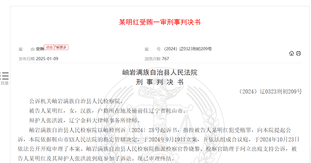 記者檢索中國裁判文書網發現,此摘錄文章源自《某明紅受賄一審刑事判決書》。此判決書顯示,貴州益佰制藥股份有限公司業務員涉其中。