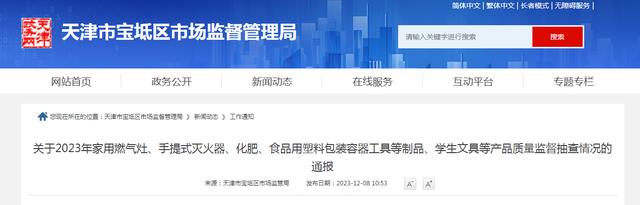 2023年,寶坻區(qū)市場監(jiān)管局開展了家用燃?xì)庠睢⑹痔崾綔缁鹌鳌⒒省⑹称酚盟芰习b容器工具等制品、學(xué)生文具等產(chǎn)品質(zhì)量監(jiān)督抽查。共抽查產(chǎn)品100批次,不合格10批次,不合格發(fā)現(xiàn)率10%。