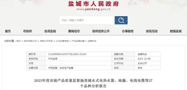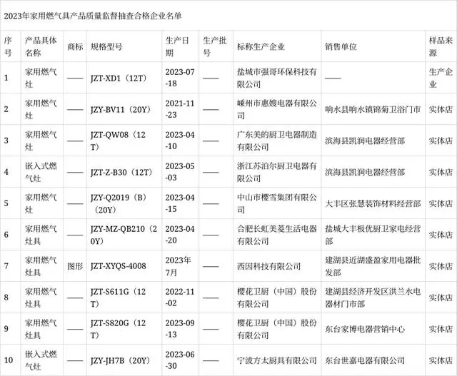 2023年度鹽城市市場監(jiān)督管理局委托南京市產(chǎn)品質(zhì)量監(jiān)督檢驗(yàn)院(南京市質(zhì)量發(fā)展與先進(jìn)技術(shù)應(yīng)用研究院)組織實(shí)施家用燃?xì)饩弋a(chǎn)品市級(jí)監(jiān)督抽查。本次抽查計(jì)劃10批次,抽到10批次,經(jīng)檢驗(yàn)合格10批次。