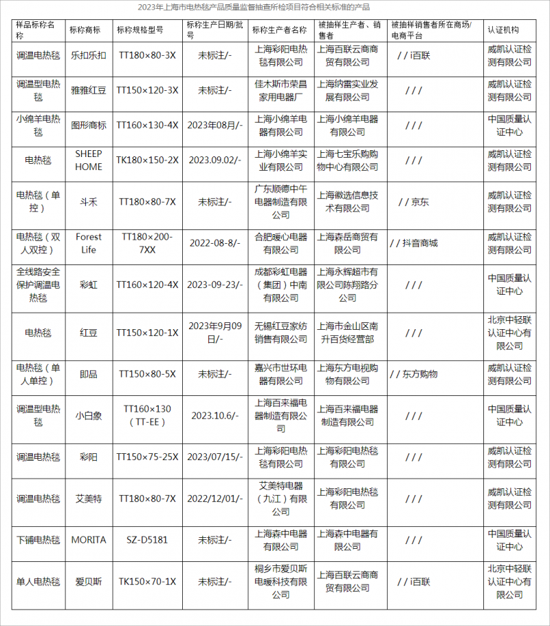 本次監(jiān)督抽查依據(jù)為SHSSXZ0065-2023《電熱毯上海市產(chǎn)品質(zhì)量監(jiān)督抽查實(shí)施細(xì)則》組織實(shí)施。