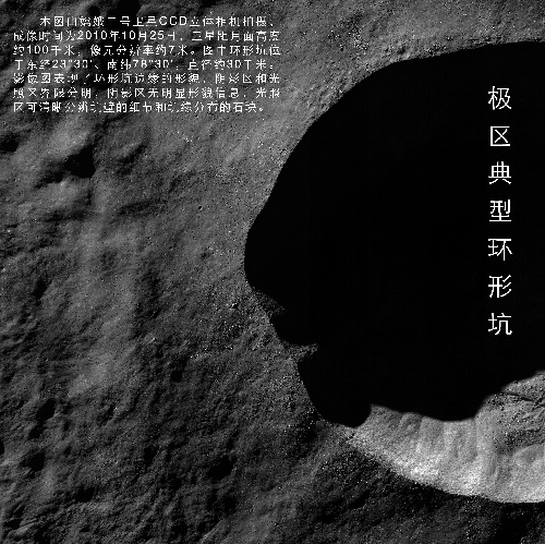 北京,2010年11月8日 國家國防科技工業局首次發布嫦娥二號月面虹灣局部影像圖 這是極區典型環形坑(成像時間為10月25日)。