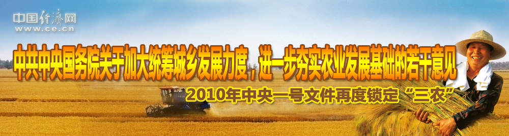 2010年中央一號文件以“加大統籌城鄉發展力度、進一步夯實農業農村發展基礎”為主題,充分體現了中央關于加強“三農”工作的一貫要求,指明了鞏固和發展農業農村經濟好形勢的根本方向。