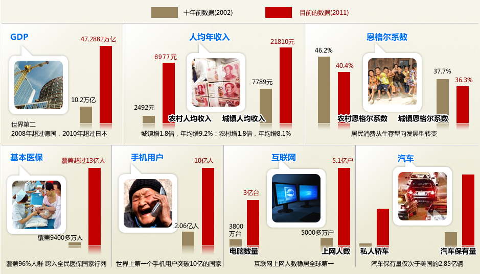 過去五年的工作和十年的基本總結胡錦濤說,十七大以來的五年,是我們在中國特色社會主義道路上奮勇前進的五年,是我們經受住各種困難和風險考驗